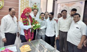 जिल्हा परिषदेच्या अतिरिक्त मुख्य कार्यकारी अधिकारी संदीप कोहिनकर यांचा शुक्रवार दि. 7 जून रोजी वाढदिवस आहे. त्यानिमित्त जिल्हा परिषदेच्या मुख्य कार्यकारी अधिकारी मनीषा आव्हाळे यांनी प्रशासनातर्फे पुष्पगुच्छ देऊन कोहिनकर यांना शुभेच्छा दिल्या. त्याचबरोबर प्रशासन विभागाच्या उपमुख्य कार्यकारी अधिकारी स्मिता पाटील, ग्रामीण विकास यंत्रणेचे प्रकल्प संचालक सुधीर ठोंबरे, बांधकाम विभागाचे कार्यकारी अभियंता संतोष कुलकर्णी, लघुपाटबंधारे विभागाचे कार्यकारी अभियंता संजय पारसे, ग्रामीण पाणीपुरवठा विभागाचे कार्यकारी अभियंता सुनील कटकधोंड, कृषी विभागाचे परमेश्वर वाघमोडे, पशुसंवर्धन विभागाचे नवनाथ नरळे, ग्रामपंचायत, शिक्षण, प्रशासन, पाणीपुरवठा, बांधकाम विभागाचे अधिकारी व कर्मचाऱ्यांनी शुभेच्छा दिल्या. ठोंबरे यांनी ‘श्रीमंत योगी” हे पुस्तक भेट दिले.