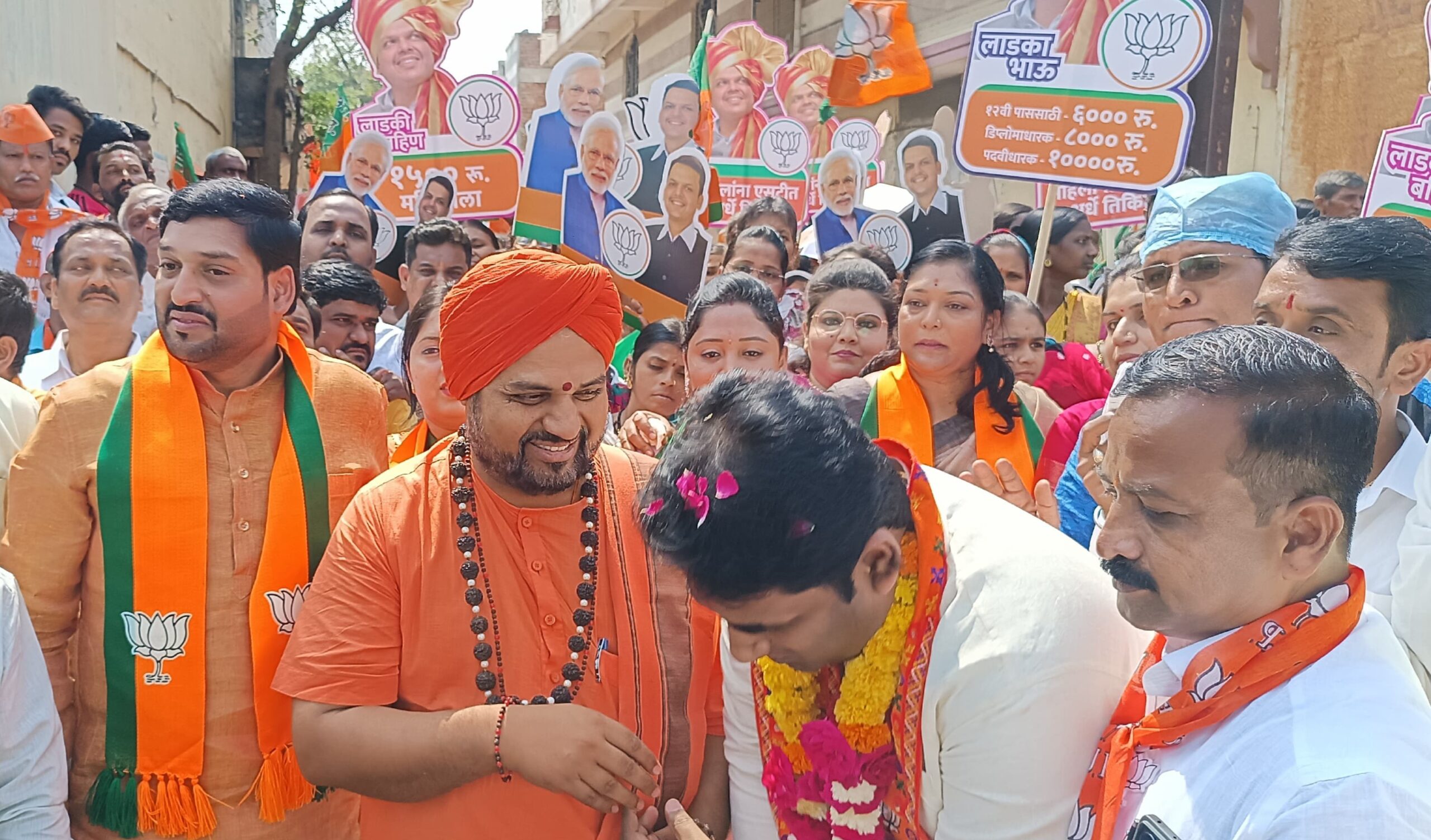 गुरु हिरेमठ मठाचे मठाधिपती अभिनव रेवणसिद्ध पट्टदेवरु महास्वामीजी यांचे नागरिकांनी ठिकठिकाणी पुष्पवृष्टी करून स्वागत केले. विकासाची तळमळ असलेले आणि राष्ट्रभक्तीचा बुलंद आवाज असलेले देवेंद्र कोठे यांच्या पाठीशीच उभे राहण्याचे अभिवचन यावेळी नागरिकांनी महास्वामीजींना दिले.