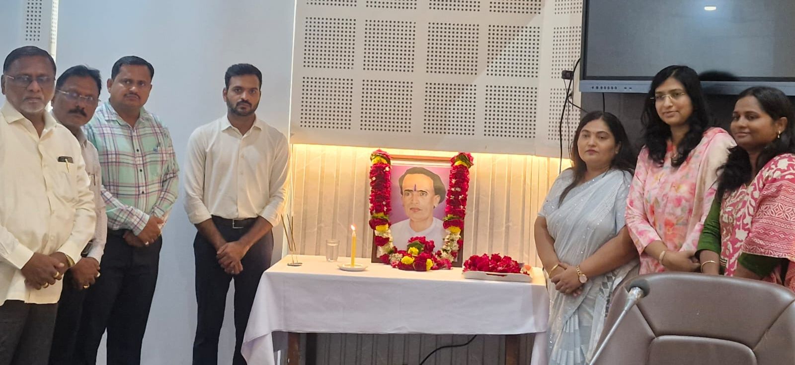 कास्ट्राईब संघटनेच्यावतीने जिल्हा समाज कल्याण अधिकारी सुलोचना सोनवणे व जिल्हाध्यक्ष अरुण क्षीरसागर यांचेहस्ते अण्णाभाऊ साठे यांच्या पूर्णाकृती पुतळ्यास पुष्पहार घालून अभिवादन करण्यात आले