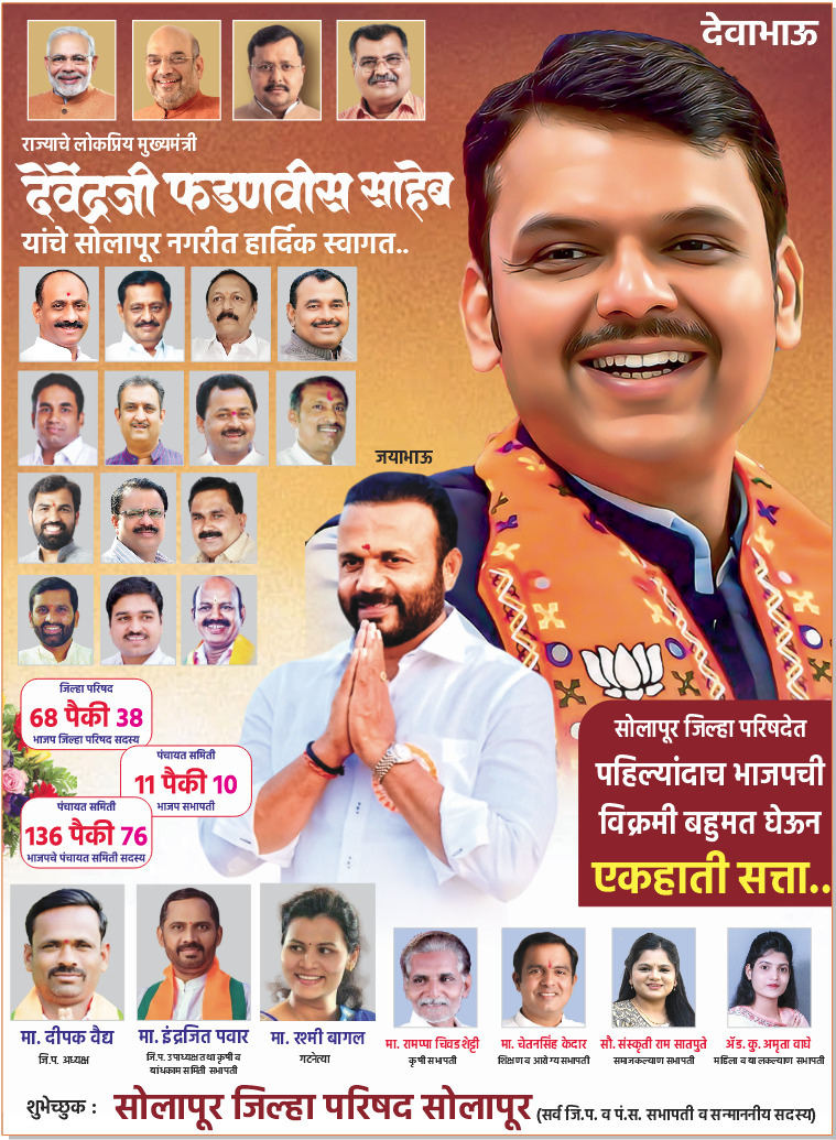 भारतीय जनता पार्टीला सोलापूर महानगरपालिकेसह जिल्हा परिषद नगरपालिका निवडणुकांमध्येही मिळालेल्या भरघोस यशाचे कौतुक मुख्यमंत्री देवेंद्र फडणवीस करणार आहेत. या सोहळ्यात शहरवासीयांनी मोठ्या संख्येने सहभागी व्हावे.