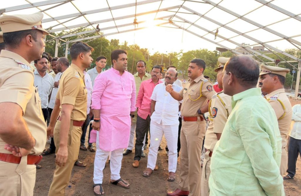 सोमवारी सायंकाळी आमदार देवेंद्र कोठे, महापौर विनायक कोंड्याल, भाजपाचे जिल्हाध्यक्ष शशिकांत चव्हाण, महापालिकेचे सभागृह नेते नरेंद्र काळे यांनी पोलीस प्रशासनासमवेत सभेच्या स्थळाची पाहणी केली.यावेळी पोलीस उपायुक्त (परिमंडळ) विजय कबाडे, पोलीस उपायुक्त गौहर हसन, वाहतूक शाखेचे सहाय्यक पोलीस आयुक्त सुधीर खिरडकर, सहाय्यक पोलीस आयुक्त दिलीप पवार, सहाय्यक पोलीस आयुक्त पंडित, सदर बझार पोलीस ठाण्याचे वरिष्ठ पोलीस निरीक्षक नामदेव बंडगर उपस्थित होते.
